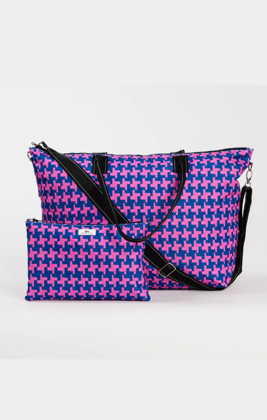 Designed with the unexpected in mind, the Overpacker is a brilliant and incredibly versatile travel partner. The tote folds up inside the zipper pouch for transport/storage (stash in your suitcase for destination shopping and to bring back souvenirs). When the tote is in use, the pouch snaps inside for extra (secure) storage. For travel day, stash essentials in the two outside slip pockets, use the trolley sleeve to slip the tote over your roller bag handle to stay hands-free. Even better, the removable crossbody strap can attach to either the tote or the pouch (which becomes a small crossbody for when you want to travel light). The options are endless with this amazing bag! And... it's machine washable! Available in three sizes.