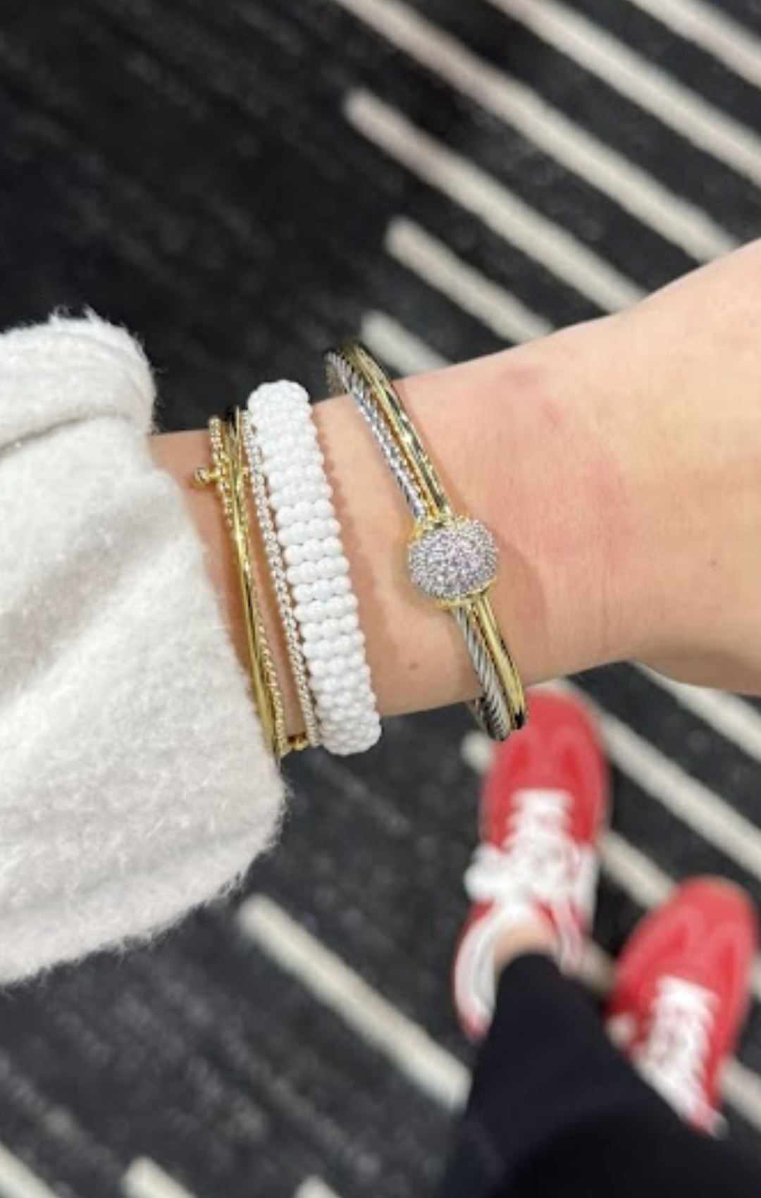 Two-tone design meets timeless elegance in this pave circle bracelet. Sparkling crystals catch the light from every angle, creating a sophisticated statement piece that transitions seamlessly from day to evening wear. The mixed metal finish adds modern versatility, complementing both warm and cool-toned jewelry collections. Perfect for layering or wearing solo, this bracelet delivers luxury appeal at an accessible price point.
