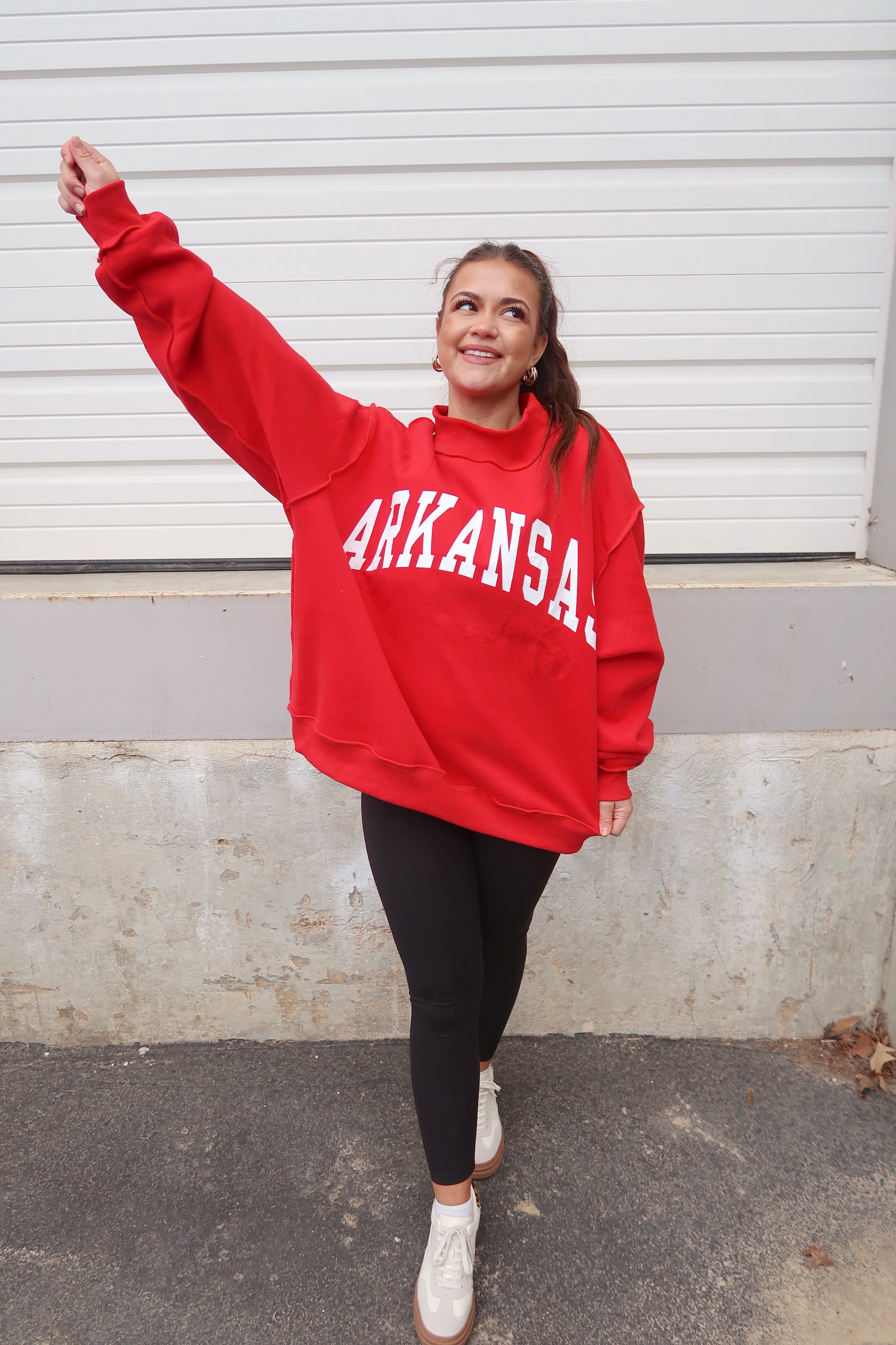 Be ready for any weather with the versatile Arkansas Reversible Mock Neck Sweatshirt. Its unique design allows for two stylish looks in one, providing maximum comfort and versatility. Stay warm and stylish with this must-have addition to your wardrobe!