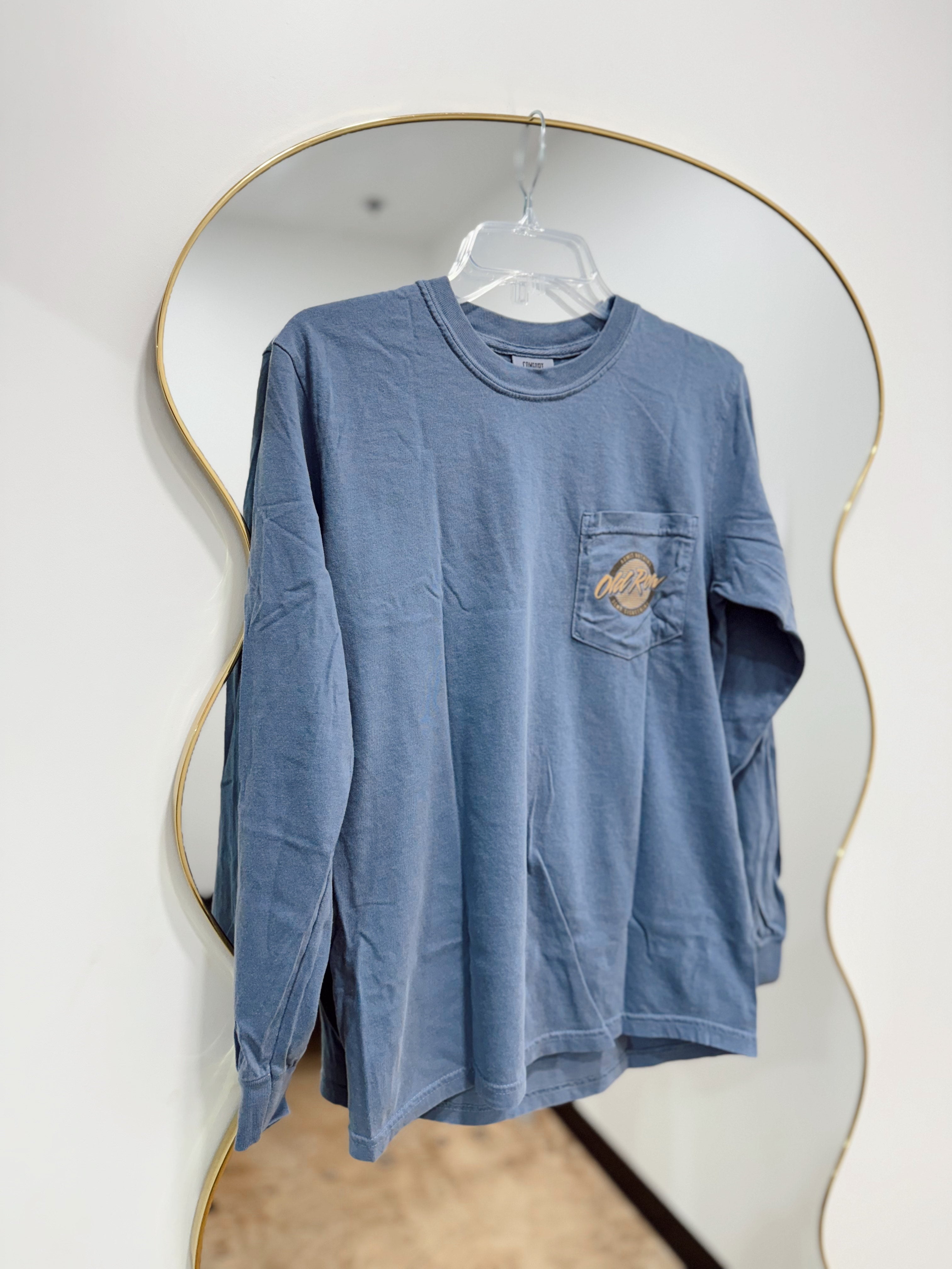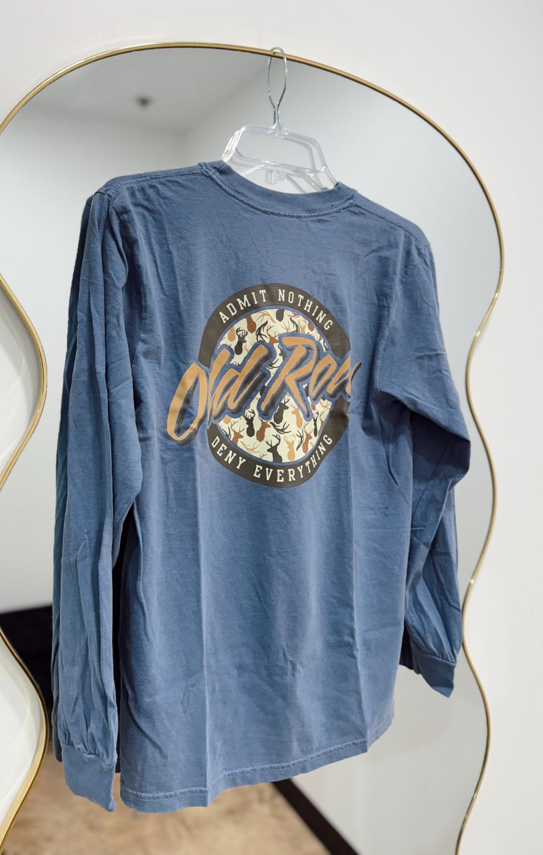 Experience rugged style and everyday comfort with the Deer Camo Circle Logo Long Sleeve Pocket Tee in Blue Jean by Old Row. This shirt combines a striking camo logo design with a classic blue jean color for a standout look. The long sleeves and convenient chest pocket add practicality, while the soft fabric ensures all-day comfort. Perfect for outdoor adventures or casual wear, this tee offers durable style that keeps up with your active lifestyle. Elevate your wardrobe with a piece that blends tradition and modern comfort effortlessly.