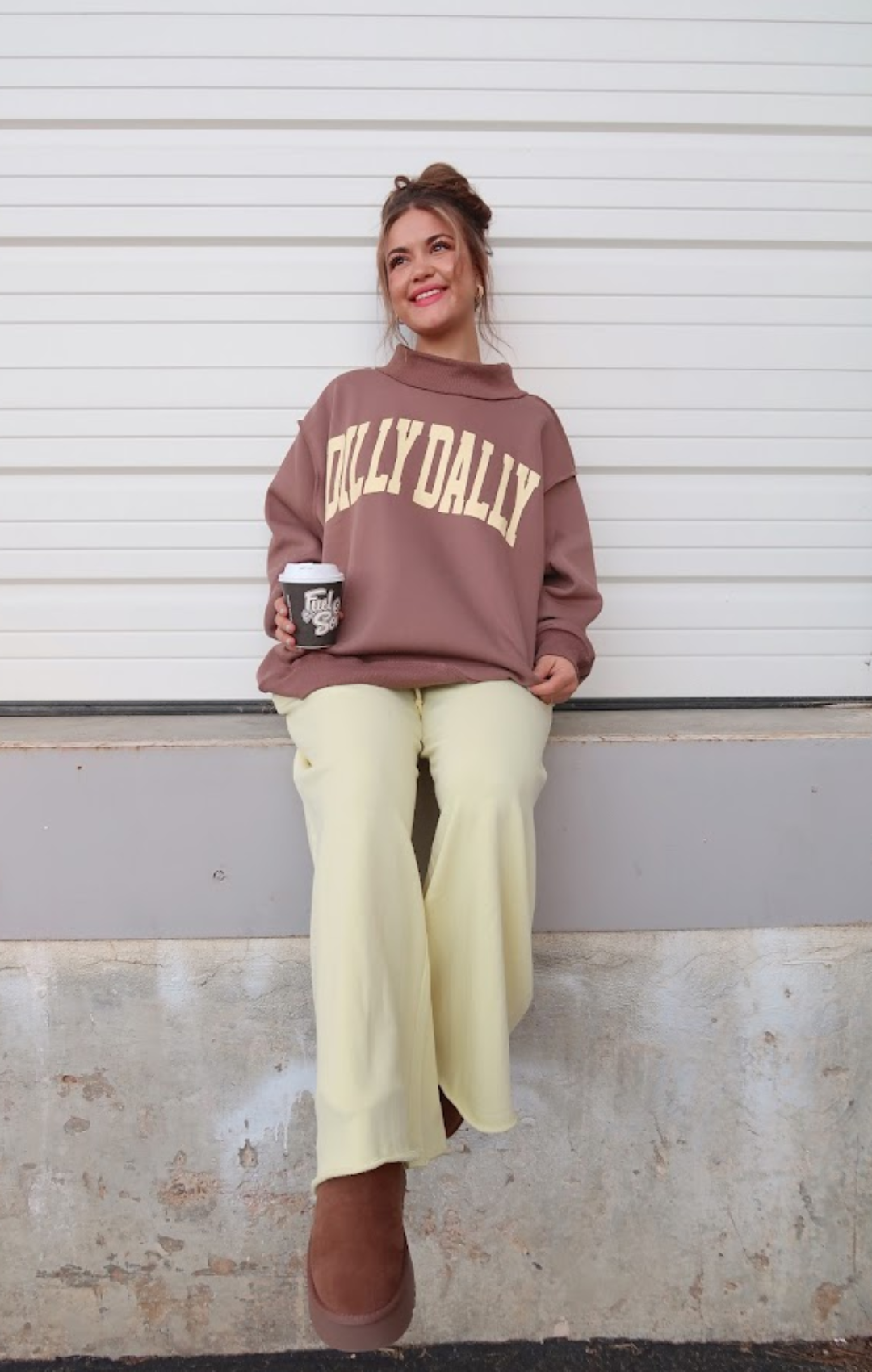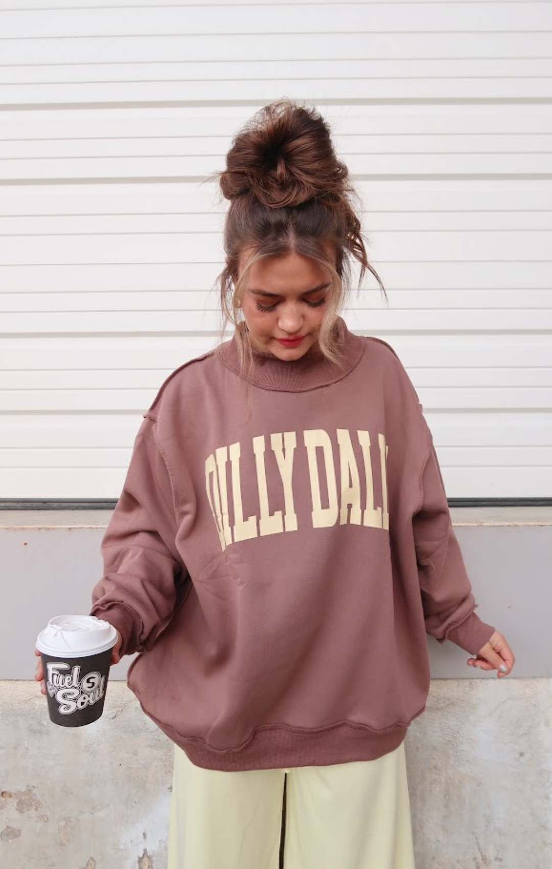 Make a statement with versatility that works twice as hard. The Dilly Dally reversible mockneck sweatshirt gives you two distinct looks in one piece, so you can switch up your style without cluttering your closet. The structured mockneck keeps things polished while the reversible design means maximum outfit combinations from minimal pieces.