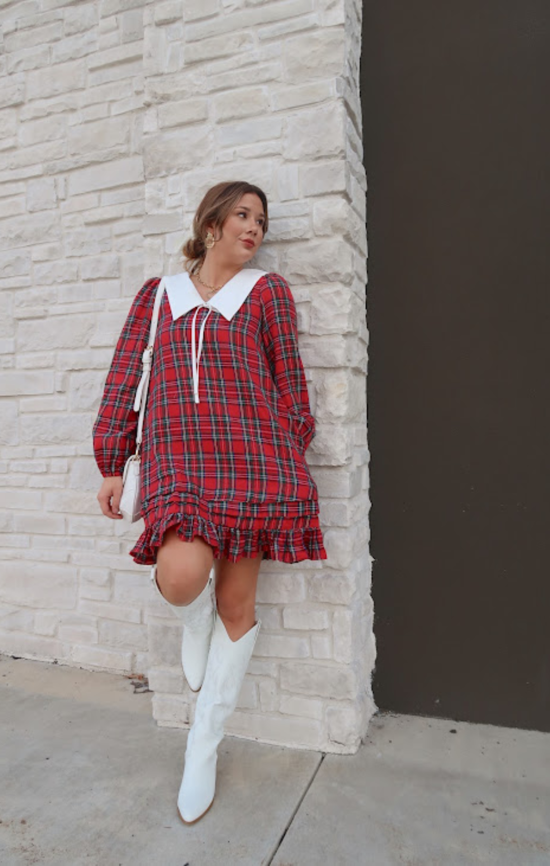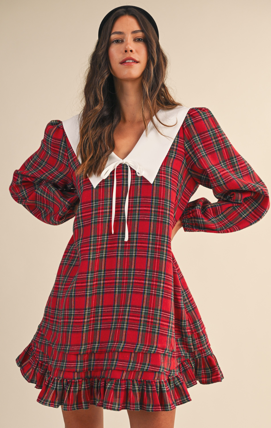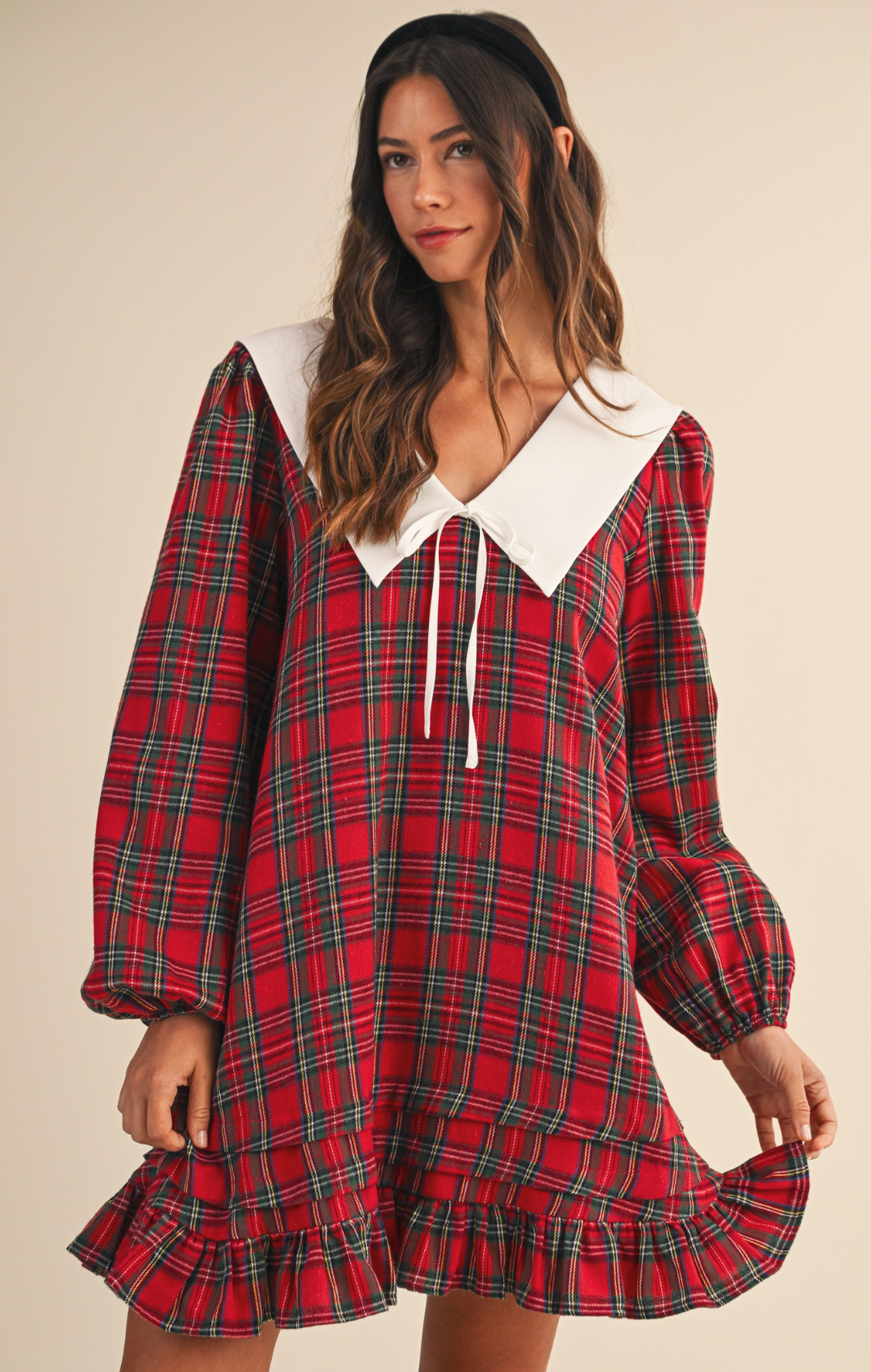 Make a festive statement in this Christmas check sailor collar mini dress, a playful take on timeless nautical style. The bold holiday plaid pattern pairs perfectly with the crisp sailor collar for a look that's both retro-inspired and contemporary. The mini length keeps things modern and fun, ideal for holiday parties, seasonal gatherings, or anyone ready to embrace festive fashion with personality. Style with knee-highs and Mary Janes for maximum charm, or dress it down with sneakers for casual holiday cheer.