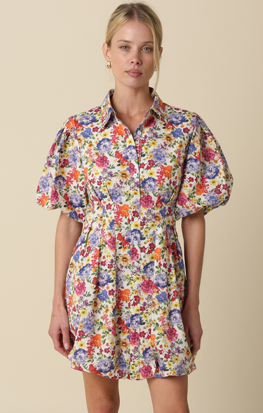 Sierra Floral Puff-Sleeve Shirt Dress