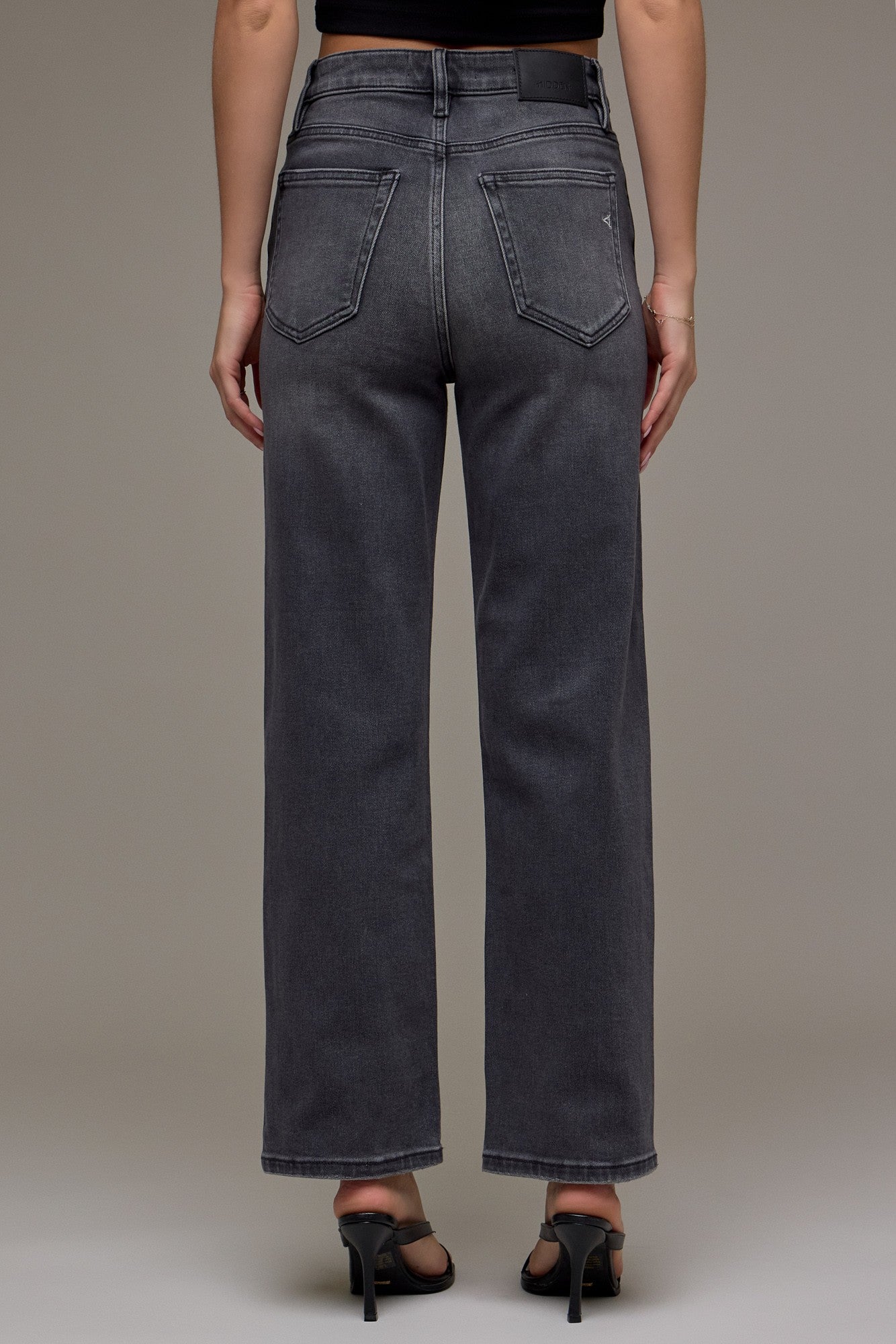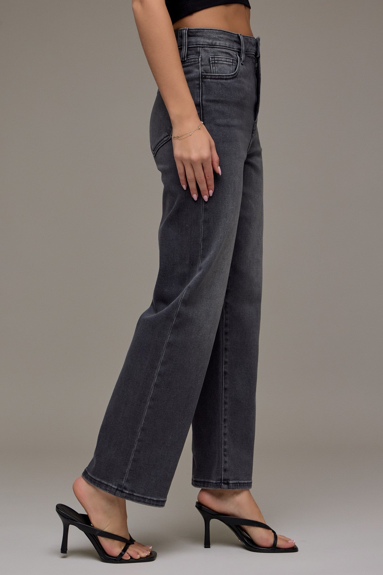 Experience ultimate comfort and effortless style with our Charcoal Wash Clean Stretch Wide Straight pants. Designed to move with you, their stretchy fabric ensures a perfect fit while the wide straight cut offers a modern, flattering silhouette. The subtle charcoal wash gives a sleek, versatile look that transitions seamlessly from casual days to chic evenings. Upgrade your wardrobe with these easy-to-wear essentials that combine comfort and contemporary fashion.