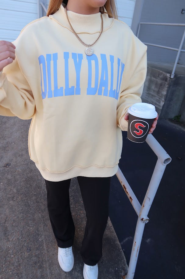 Make a statement with versatility that works twice as hard. The Dilly Dally reversible mockneck sweatshirt gives you two distinct looks in one piece, so you can switch up your style without cluttering your closet. The structured mockneck keeps things polished while the reversible design means maximum outfit combinations from minimal pieces.