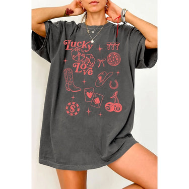 Elevate your wardrobe with our Lucky Love Tee, featuring an array of captivating graphics that make each shirt uniquely expressive. These versatile tops pair effortlessly with jeans or skirts, allowing you to showcase your personality while enjoying premium comfort. Don't miss your chance to add this must-have statement piece to your collection.