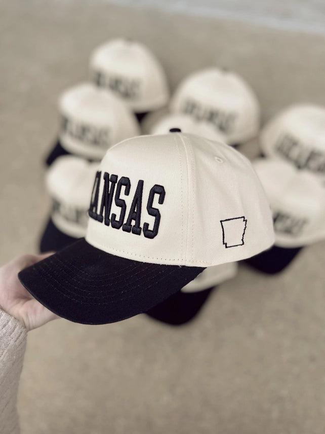 Embroidered Arkansas Snapback Show your state pride with this striking snapback featuring a dimensional 3D embroidered Arkansas silhouette on the side. The raised embroidery adds depth and texture, making this cap stand out from standard designs. Adjustable snapback closure ensures a comfortable fit for all head sizes. Perfect for locals, travelers, or anyone with Arkansas roots—wear it as a conversation starter or gift it to someone who loves the Natural State. Durable construction and classic styling make this a versatile addition to any casual wardrobe.
