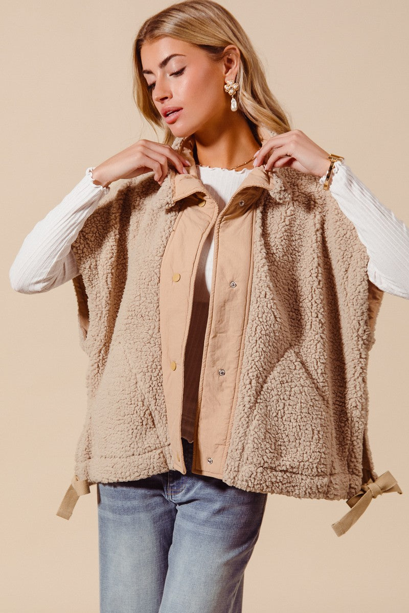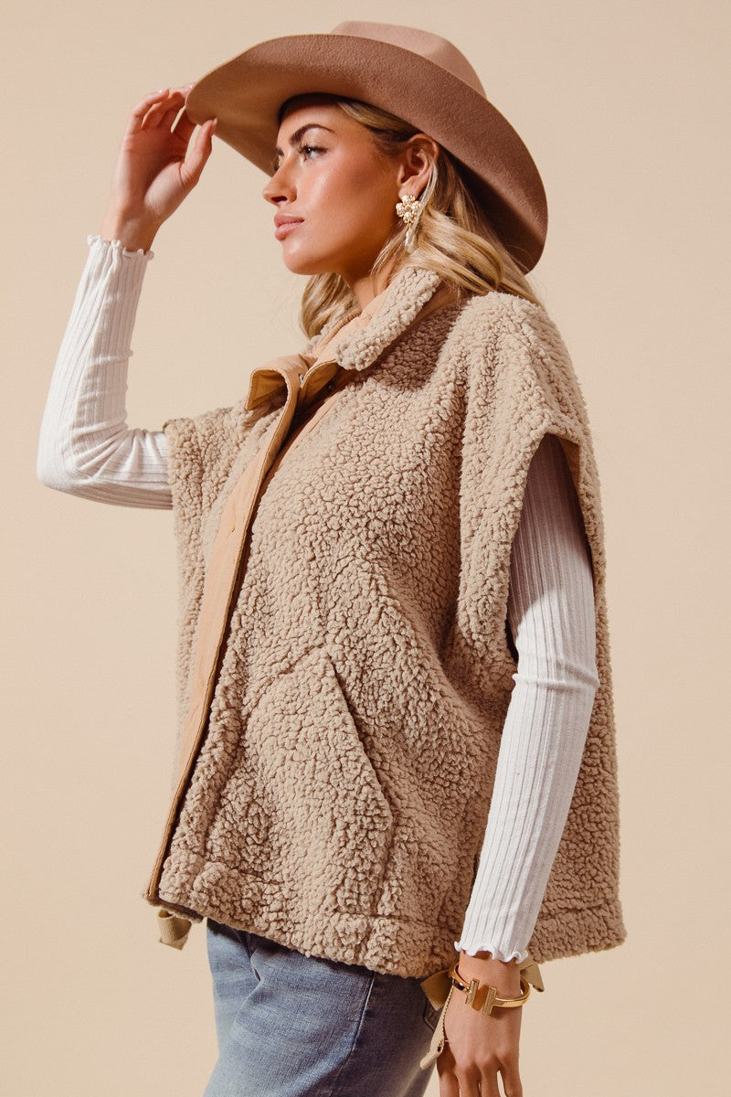 Experience ultimate comfort with this Oversized Soft Sherpa Fur Sleeveless Vest Jacket. Its plush sherpa fabric provides exceptional warmth and cozy softness, while the oversized fit offers a relaxed, effortlessly stylish silhouette. Perfect for layering over your favorite outfits, this vest brings both comfort and trendy appeal to your wardrobe, making it a versatile choice for cooler days and casual outings. Embrace warmth without compromising on fashion.