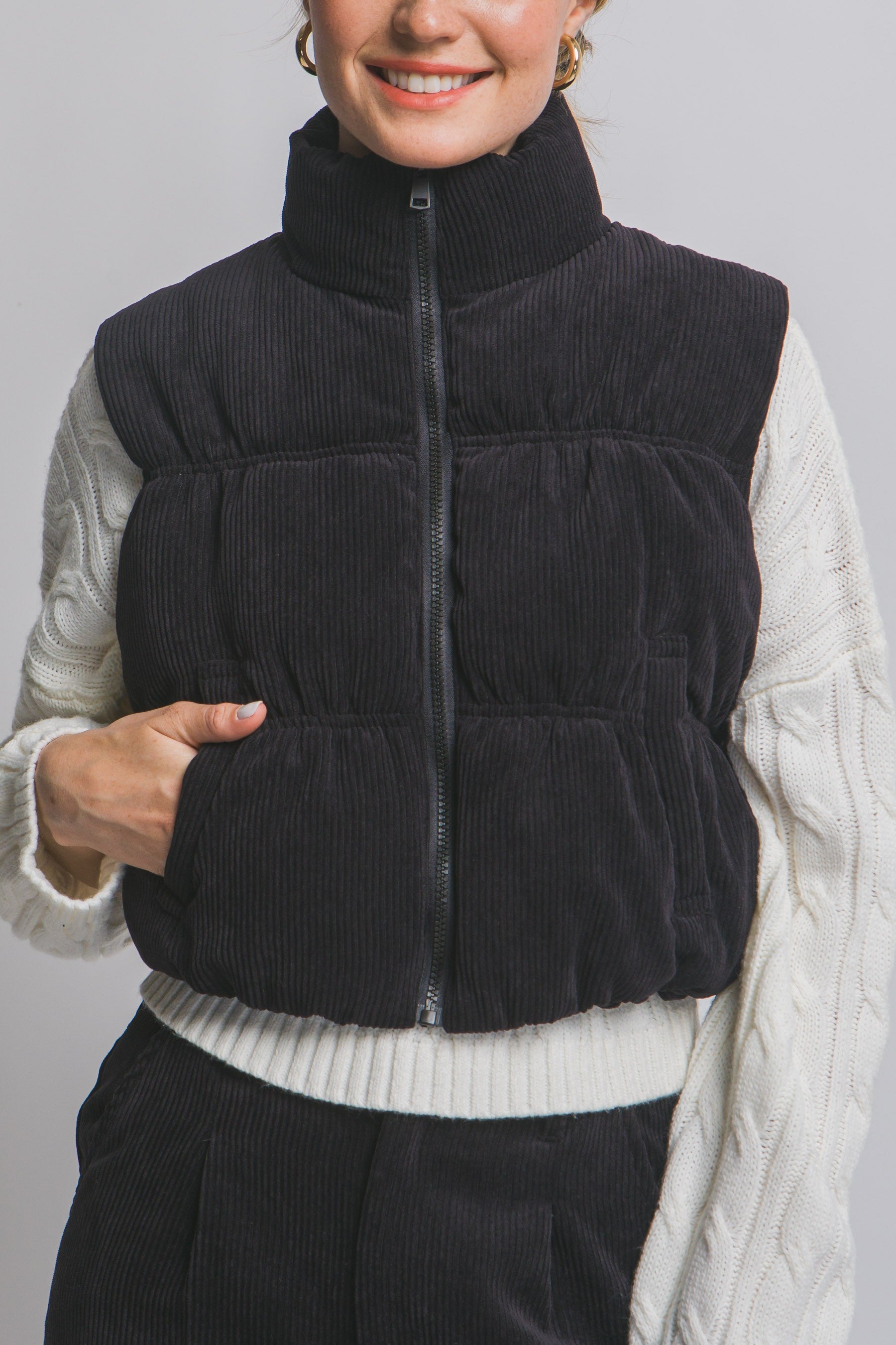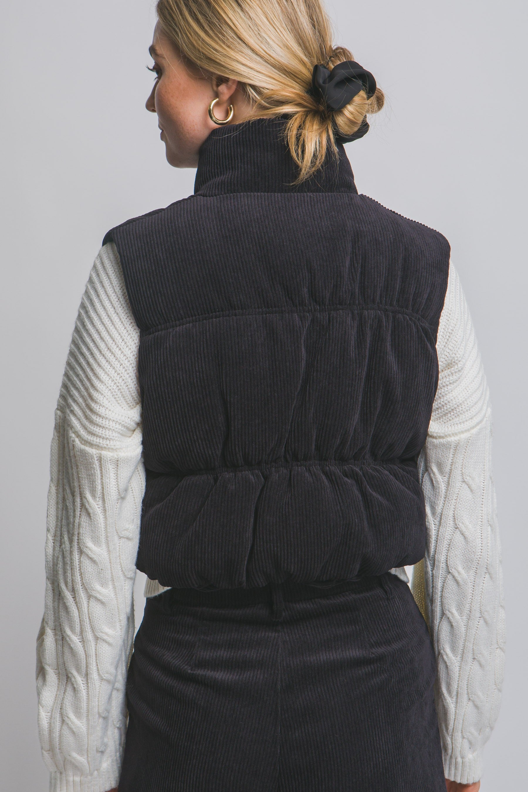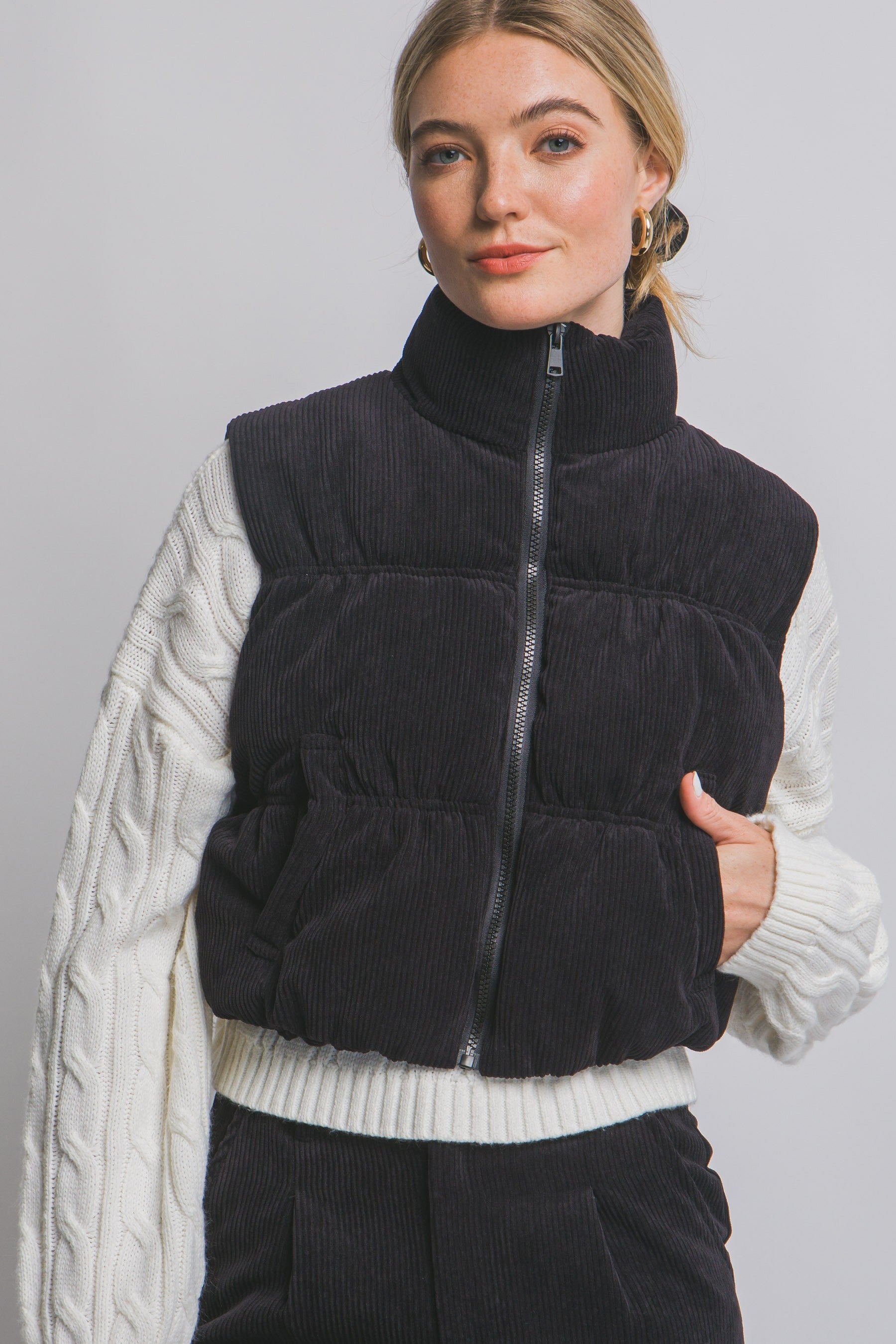 Stay effortlessly stylish and cozy with the Corduroy Zip Up Puffer Vest. Combining the timeless texture of corduroy with the warmth and practicality of a puffer design, this vest offers lightweight insulation and a flattering fit. The full zip closure makes layering easy, while its versatile style enhances any casual or outdoor outfit, keeping you comfortable and ready for cooler days.