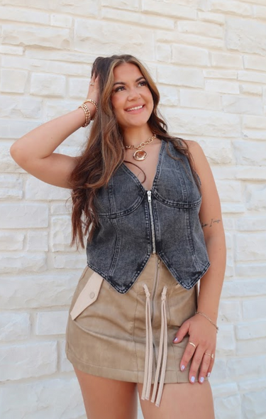 Denim Western Crop Vest Top, halter top, zip-up top, V-neck denim, western crop top, summer denim top, sleeveless top, festival outfit, street style, sexy casual top Music Festivals: A go-to option for a stylish and breathable outfit under the sun. Casual Day Out: Ideal for brunch, beach walks, or summer strolls with a fashionable flair. Western-Inspired Looks: Pairs perfectly with cowboy boots and accessories for a country-chic aesthetic. Vacation Wear: A trendy and lightweight choice for tropical or desert destinations. Date Nights: Bold and confident for casual evenings out or summer rooftop dates.