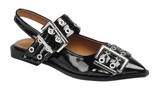 Step into sleek style with these pointed grommet flats. Designed to blend edgy metal accents with a sharp silhouette, they add a modern twist to any outfit. Comfortable for all-day wear, these flats offer both fashion and function, making them your go-to choice for effortless chic. Elevate your look with bold details that won’t compromise on comfort.