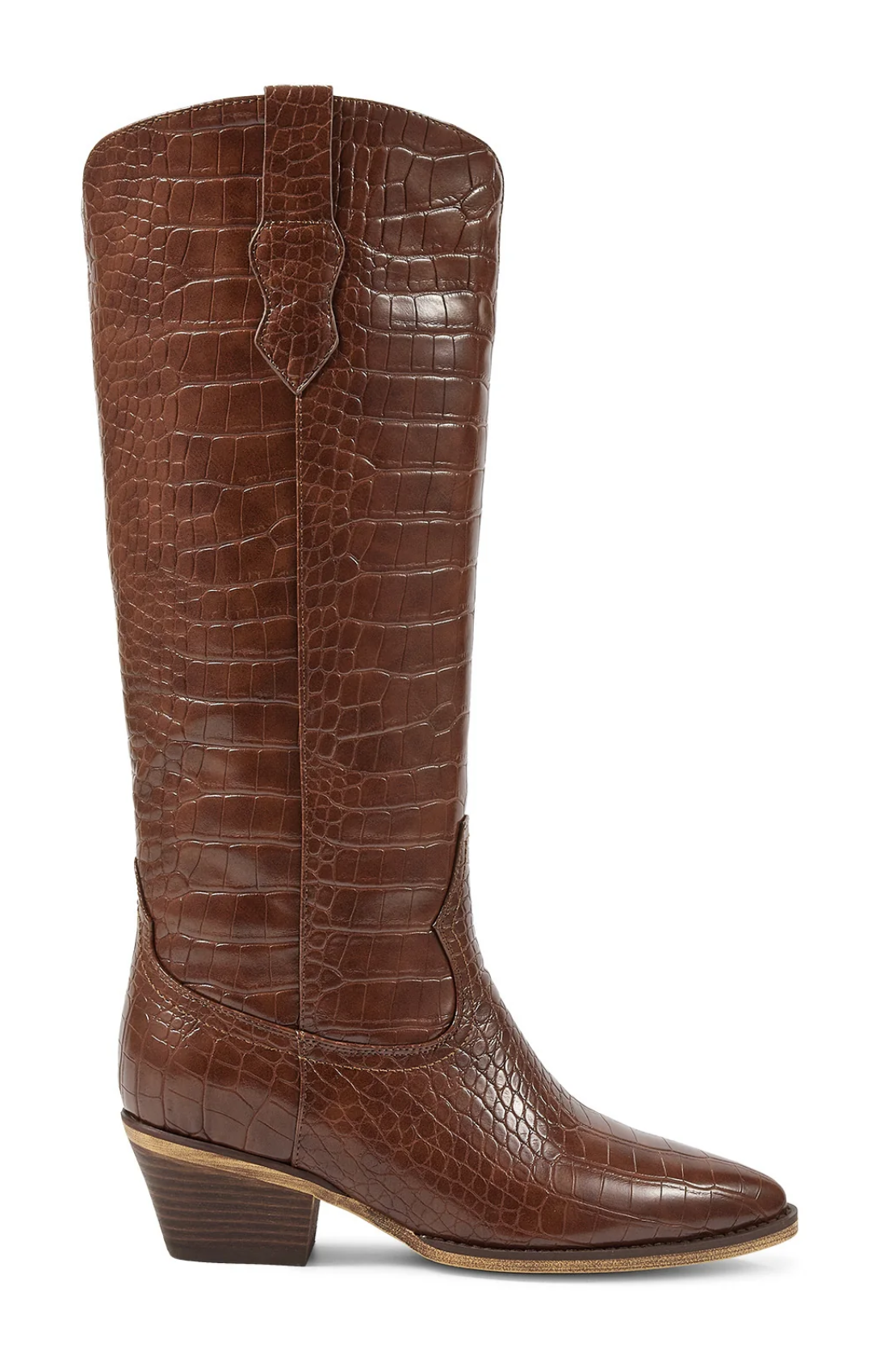 Introducing The LeAnn in Chocolate Brown- one of our most elevated cowgirl boots in a rich chocolate brown. With an embossed, glossy crocodile texture from pull loop to toe, these boots are the perfect neutral for any outfit.