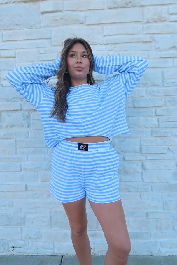 Made from ultra-soft knit fabric, these striped shorts are designed for all-day ease with a relaxed fit. The elastic waistband keeps things comfy and secure, while the playful stripes add a pop of fun to your everyday look. Perfect for lounging, mixing and matching with other Stripe Society favorites, or pairing with the matching top for the cutest set ever.