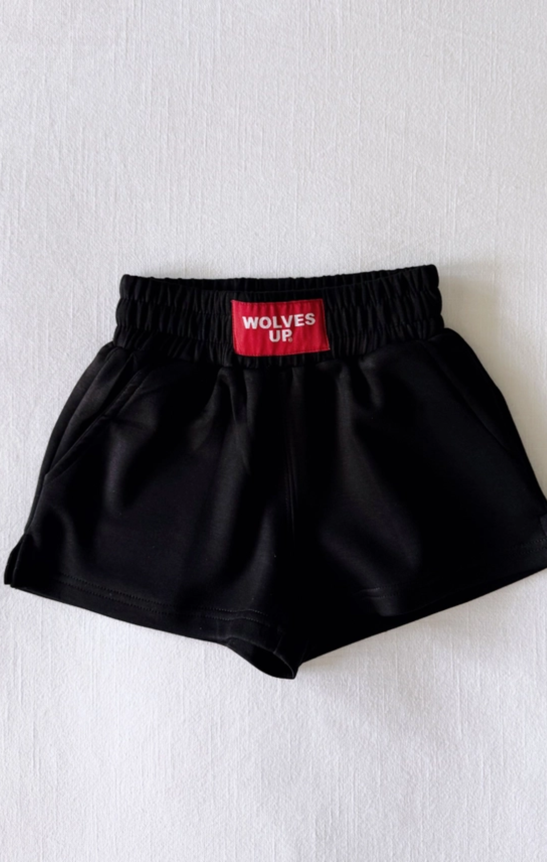 The Ava Airy shorts are THE softest. Lightweight and perfect for Fall! With a gathered waist band, these shorts fits true to size and are slightly high-waisted. Includes a WOLVES UP woven label on the front center of the waist band.