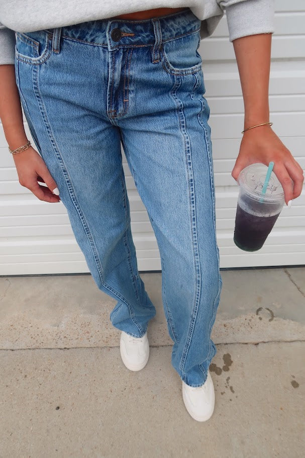 Step up your denim game with the Logan High Rise Relaxed Dad Jeans in a versatile medium wash. Featuring a flattering high-rise waist and a relaxed fit, these jeans offer comfort without compromising style. The distinctive front seam detail adds a unique touch, setting them apart from ordinary denim. Perfect for casual days or weekend outings, these jeans combine timeless dad style with modern flair, making them an essential and effortlessly cool addition to your wardrobe.