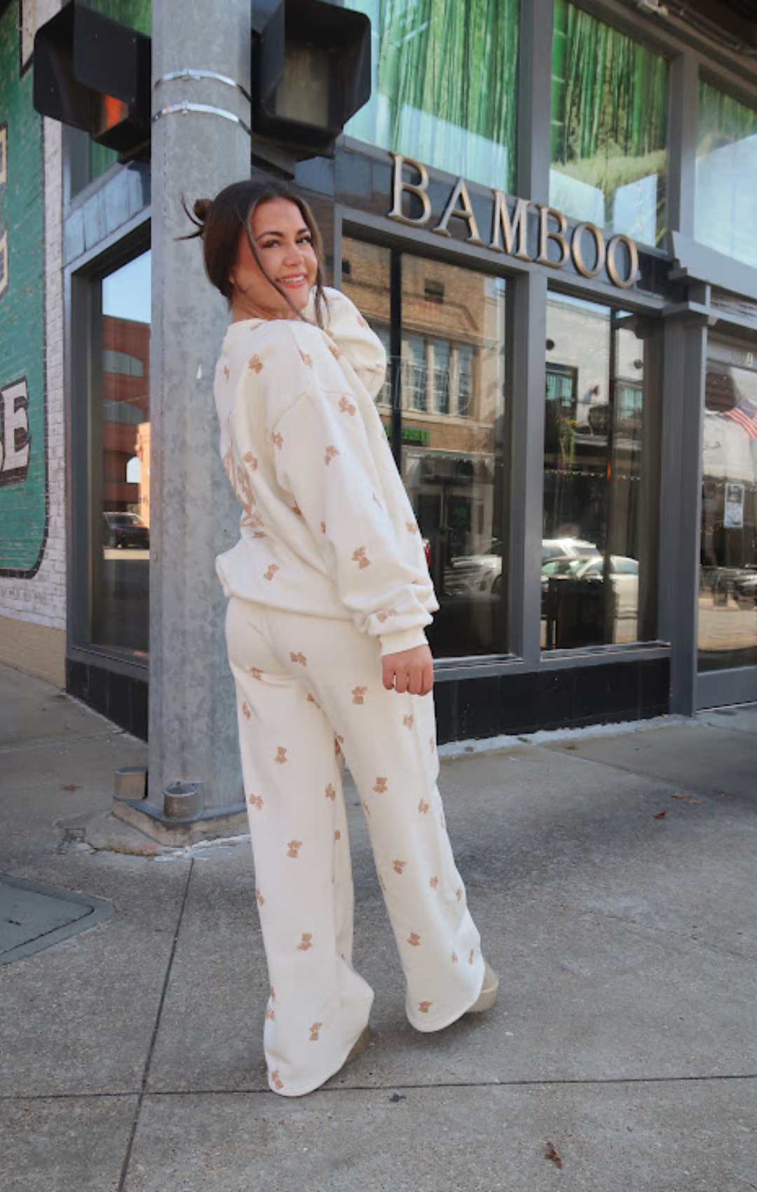 Kadence is 5 '2 " 125lbs and wearing a size small. She has a 34 bust, 29 waist, 35 hips. She is typically a size small in tops and size 27 in jeans.