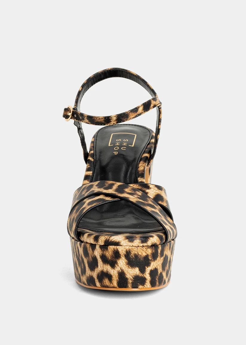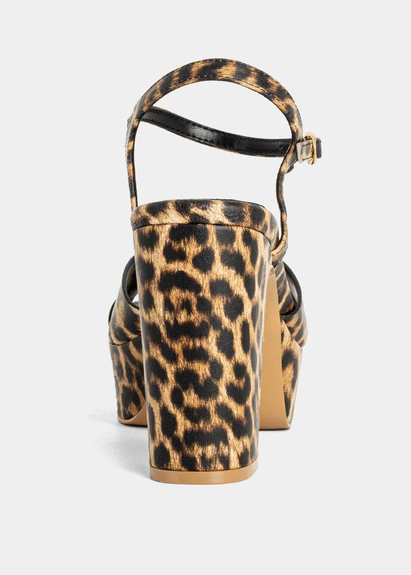 Step into wild sophistication with the GWEN in Leopard Print. This bold platform heel adds instant drama to your outfit with its all-over leopard design and sky-high silhouette. The crisscross front and ankle strap offer a secure fit, while the chunky heel keeps you balanced and stylish all night long.