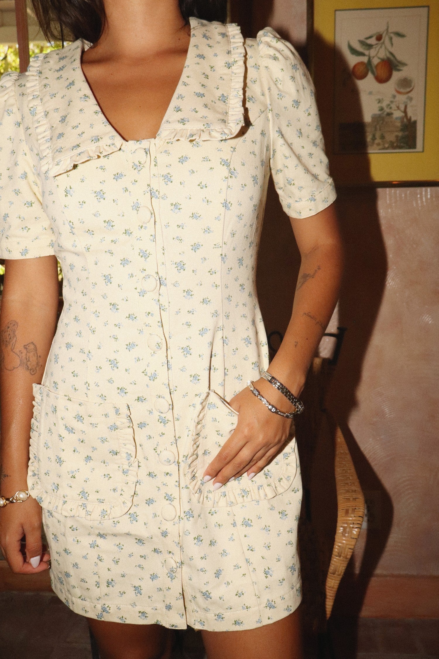 Ruffle Collar Button Front Mini Dress