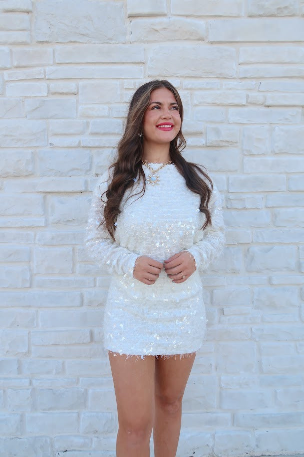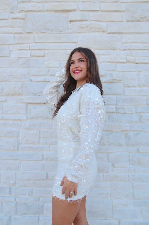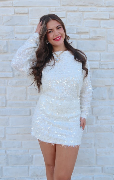 Shine bright in this champagne sequin long sleeve top that effortlessly elevates any occasion. The shimmering sequin detailing catches light beautifully, creating a dazzling effect perfect for special events, nights out, or whenever you want to feel extraordinary. Long sleeves provide elegant coverage while maintaining that show-stopping sparkle, making it versatile enough to dress up or down.
