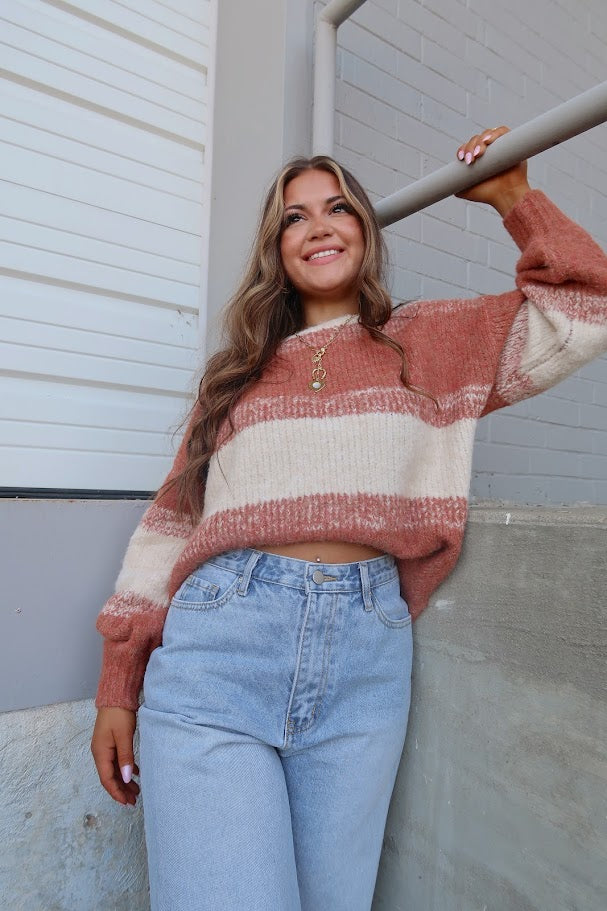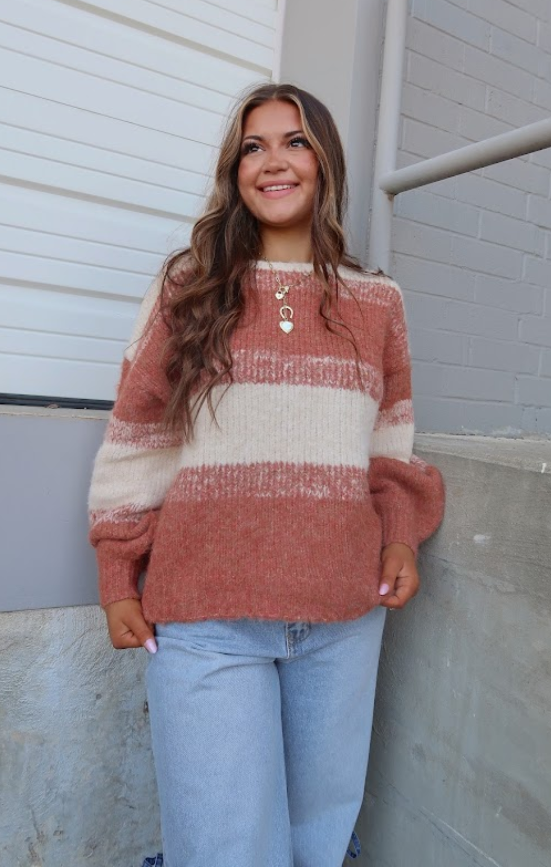Stay cozy and stylish in the Fuzzy Knit Stripe Sweater, featuring a soft, plush texture that wraps you in warmth. The bold stripe pattern adds a modern, eye-catching element to your look, making it perfect for layering on chilly days. Comfortable and versatile, this sweater effortlessly elevates your casual wardrobe.