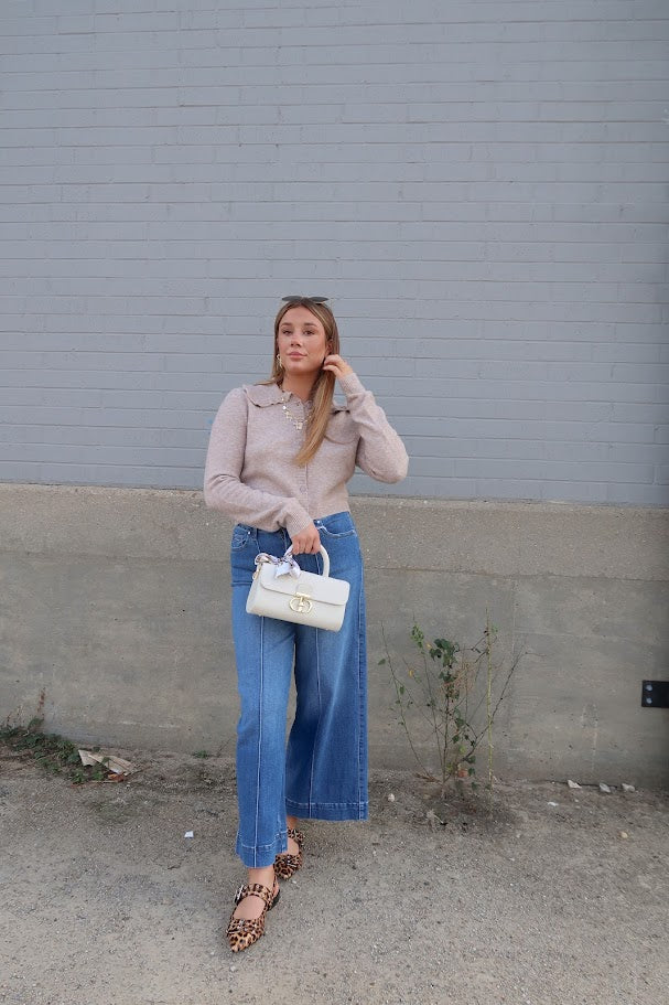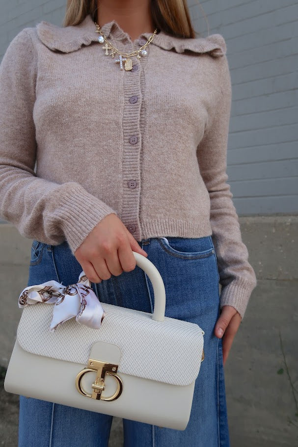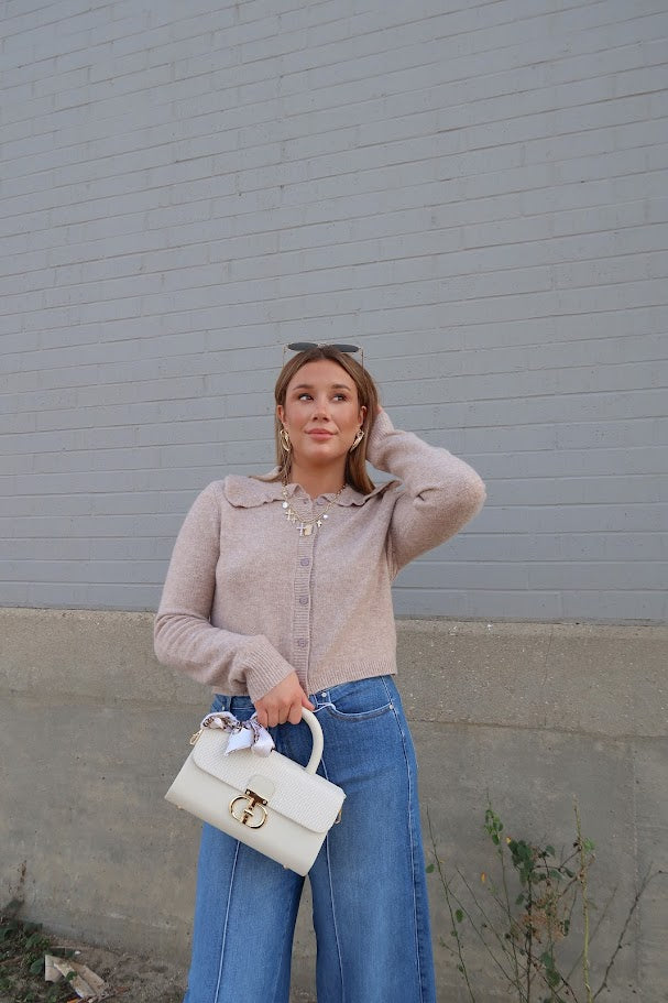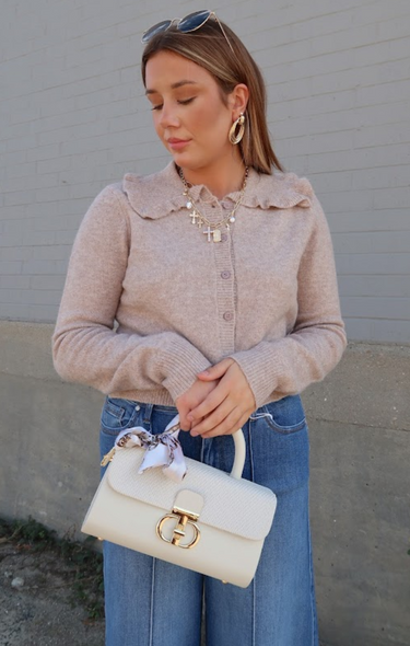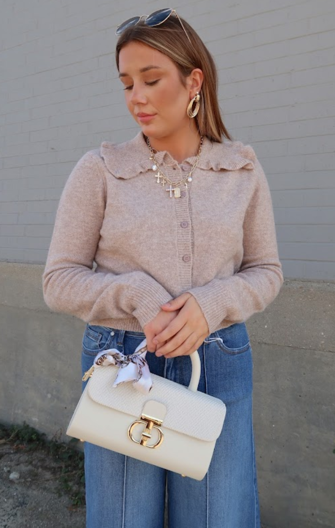Add timeless charm to your outfit with this long sleeve knit cardigan featuring a button-down front and delicate ruffled collar detail. Designed for cozy warmth and feminine elegance, it’s perfect for layering over your favorite tops or dresses. Elevate your style with a versatile piece that combines comfort and classic sophistication.