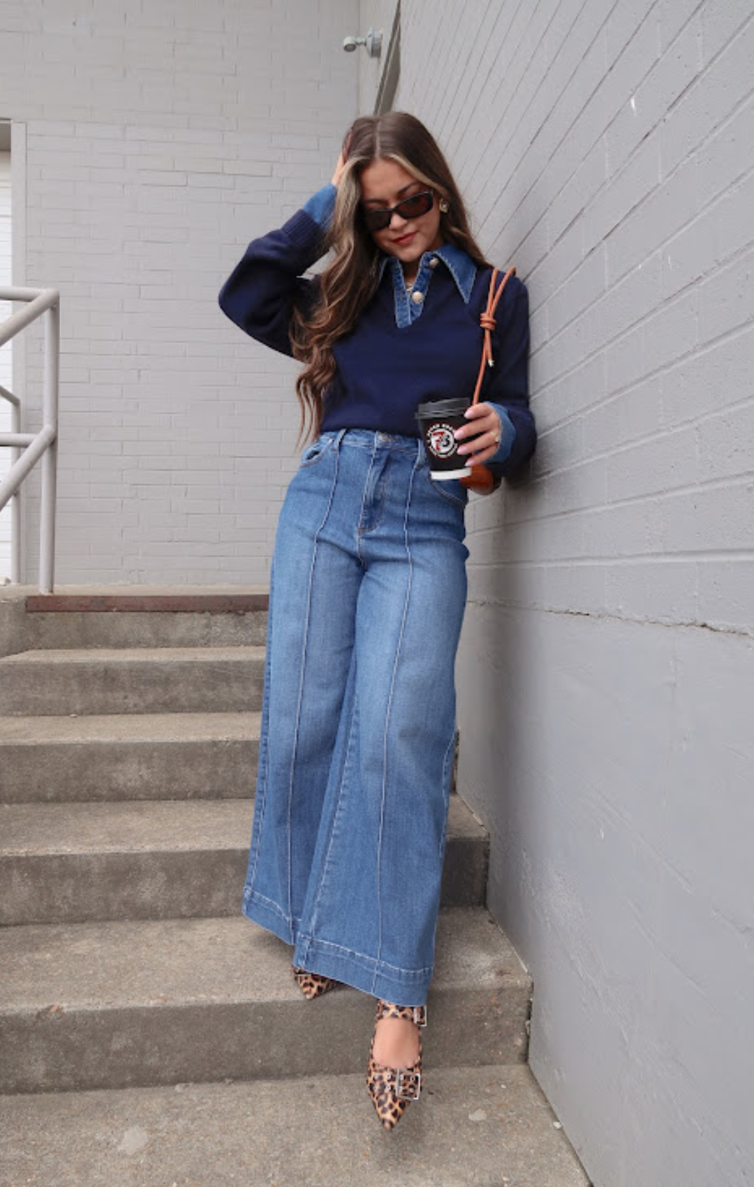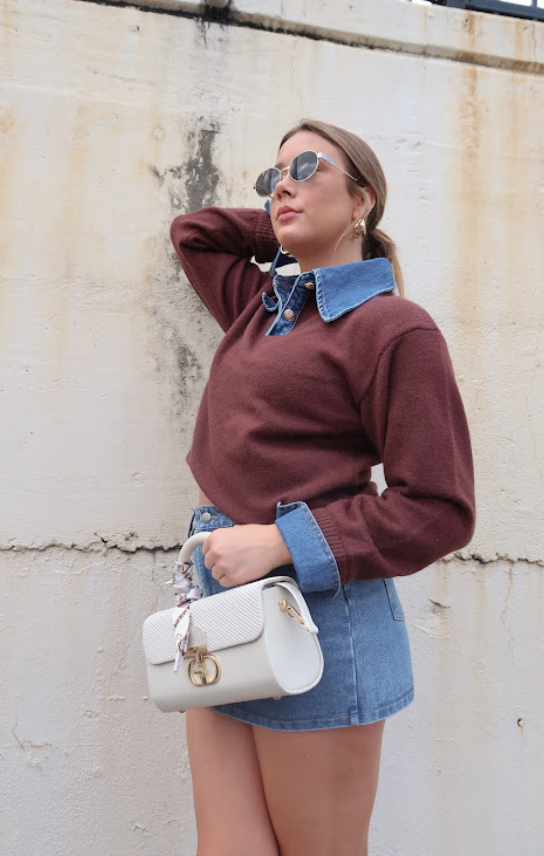 Elevate your wardrobe with the Triana Denim Knit Top, expertly blending a layered look into a single stylish piece. Featuring denim wash cuffs and collar, complemented by elegant gold button details, this top offers effortless sophistication. Its unique design adds texture and contrast, making it perfect for both casual and polished occasions. Combine comfort and chic appeal seamlessly with this versatile wardrobe essential.