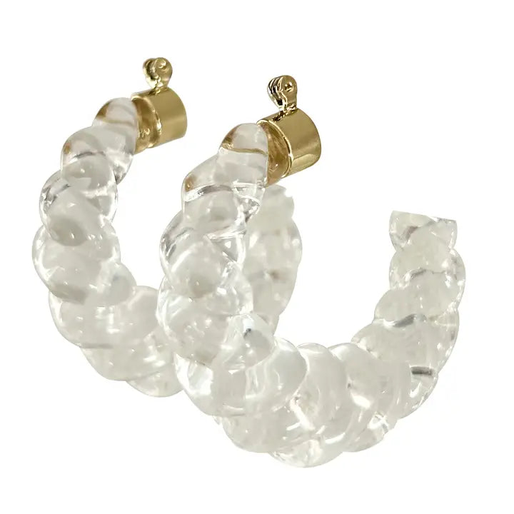 Immerse yourself in the exquisite allure of our Corley Hoops. These gold-plated earrings, enhanced with resin detail, are a testament to Gemelli's commitment to on-trend, versatile design. Handmade in Dallas, TX, these earrings effortlessly transition from day to night, complementing all lifestyles. Enjoy the beauty and elegance that these hoops bring, mirroring the brand's aspiration to enhance the natural beauty of every woman. 1.5" acrylic hoop earring with CZ detail.