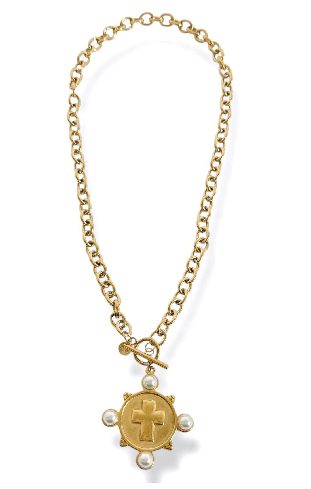 Elegant cross coin medallion suspended on a delicate chain. A timeless piece that blends spiritual symbolism with classic style, perfect for everyday wear or meaningful gifting.