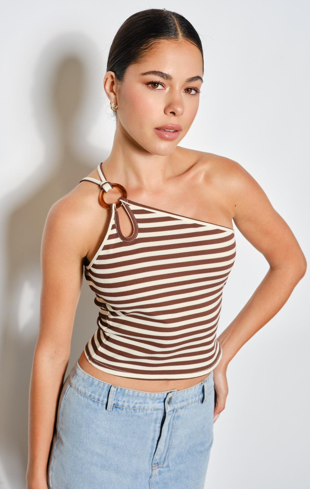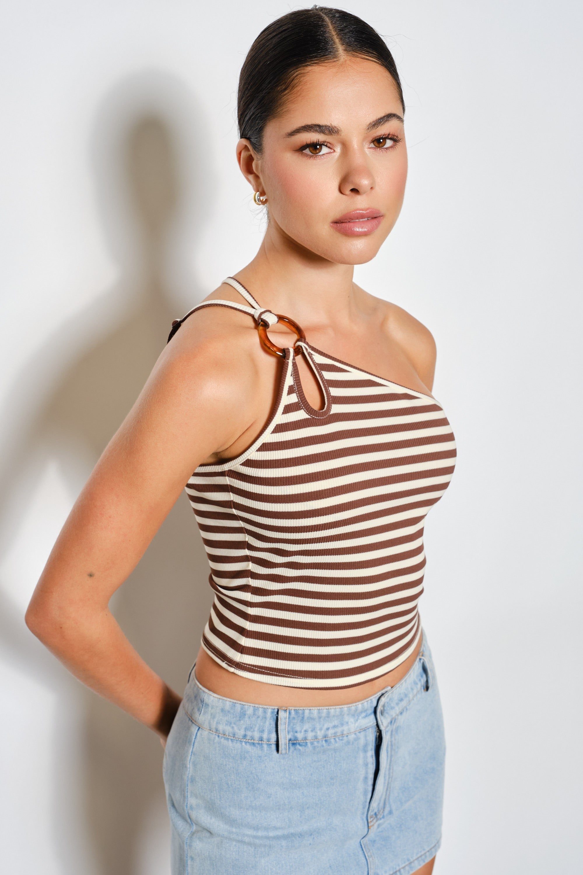 Turn up the fun in the Francie One Shoulder Cami-a flirty little statement with major cool-girl vibes. This striped cami features a sleek one-shoulder neckline with an adjustable strap for a just-right fit, plus a chic ring detail that adds the perfect touch of edge. Soft and stretchy, it's made to keep you comfy while you stand out.