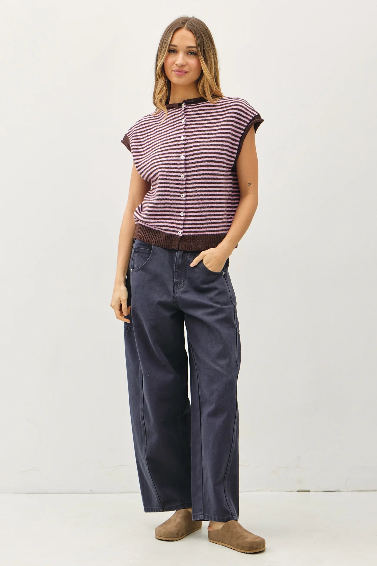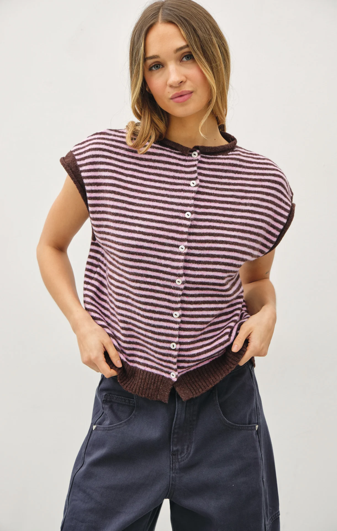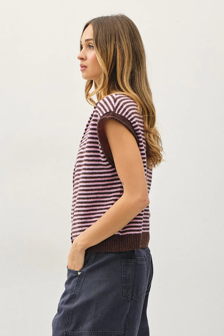 Layer this mini striped sweater vest over your favorite tee for an effortless preppy look. Crafted with the same soft, comfortable feel as our beloved Piper Cardigans, it's perfect for adding dimension to any outfit. The classic striped pattern works with everything in your wardrobe, making it a versatile essential for year-round styling.