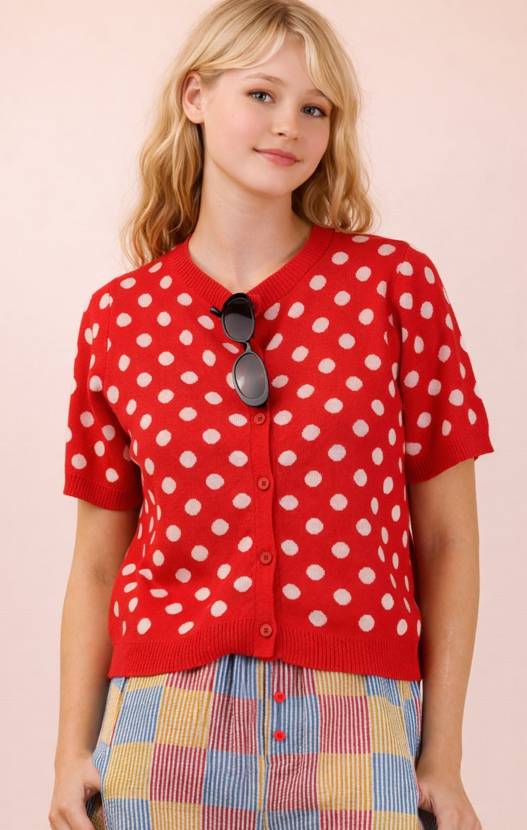 Polka Dot Button Knit Sweater