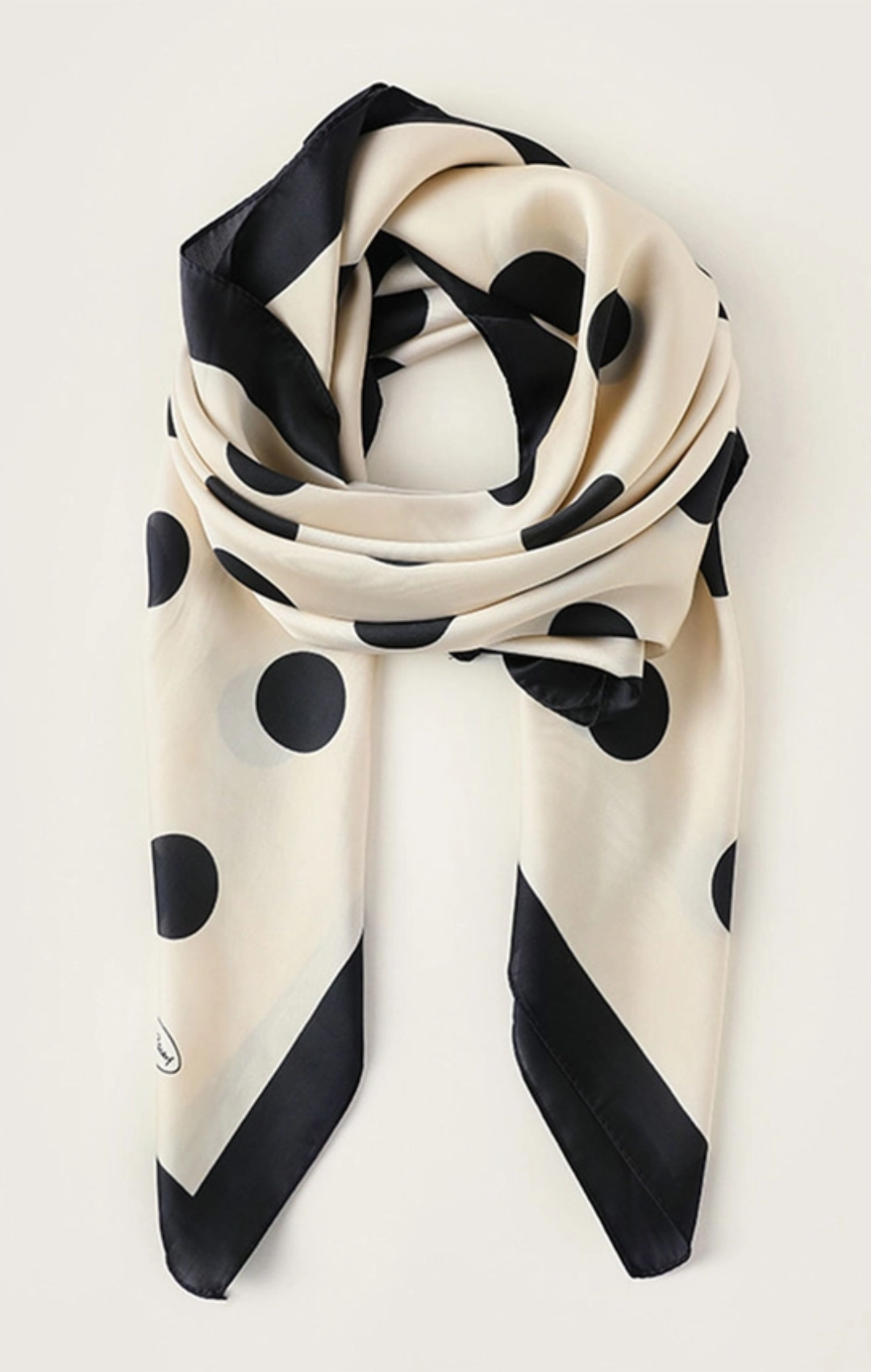 Polka Dot Silky Wrap Scarf Add timeless elegance to your accessory collection with this luxurious silky wrap scarf featuring a charming polka dot pattern. The smooth, fluid fabric drapes beautifully around shoulders, ties at the neck, or wraps around your hair for instant sophistication. Perfect for layering over dresses, securing around handbags, or creating that effortlessly chic European-inspired look. The classic polka dot design complements both casual and dressed-up outfits, making it a versatile staple you'll reach for season after season. Silky construction feels gentle against skin while maintaining its shape and sheen through regular wear.