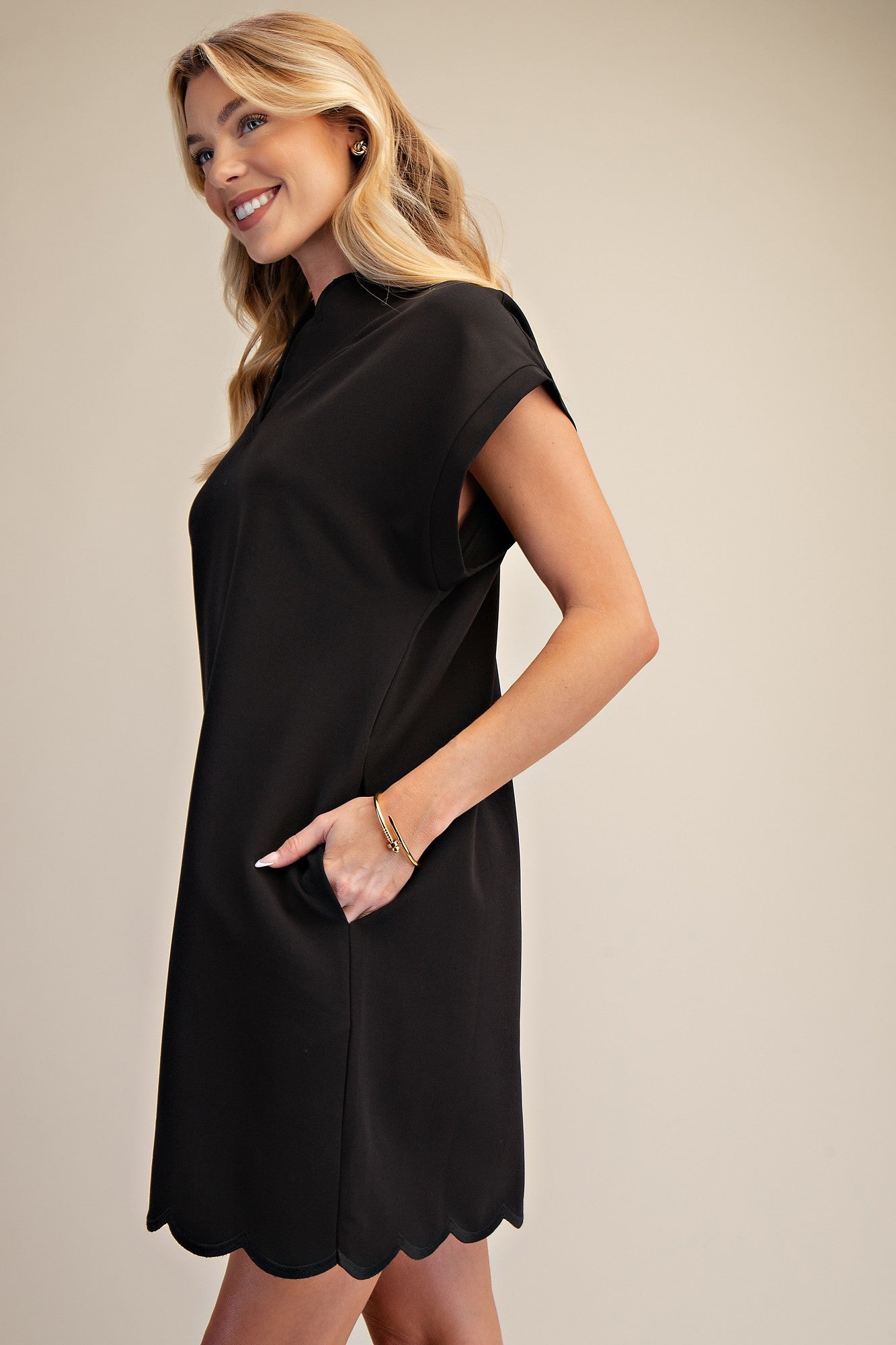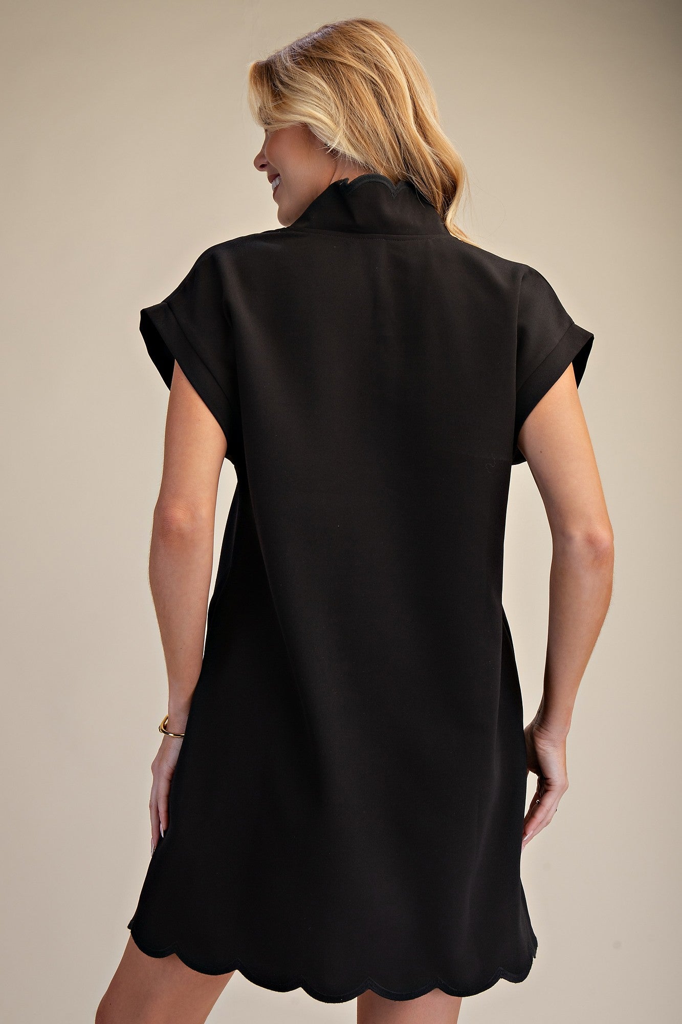 The shift dress silhouette is flattering and comfortable, while the mini length keeps it modern, stylish and easy to wear. The scallop trim at the neckline and hem adds a touch of feminine charm. The cap sleeves are perfect for warm weather, and the v-neckline is flattering on all body types.