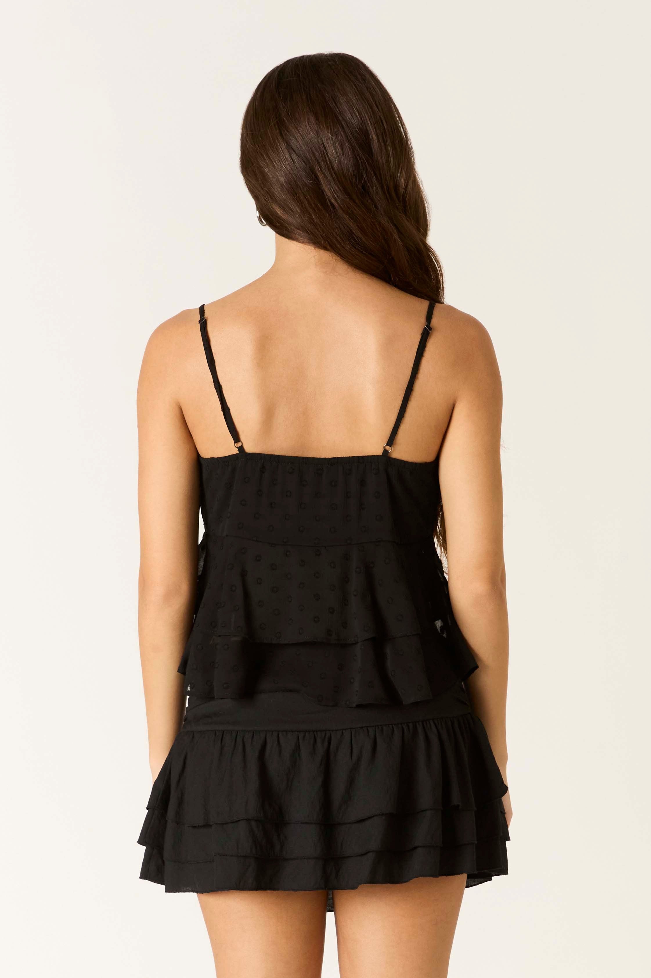 Timeless and versatile, this spaghetti strap polka dot cami is a closet staple. Delicate straps frame the neckline while classic polka dots add retro-inspired charm. Layer it under sheer tops, pair with high-waisted bottoms, or wear solo for an understated look. Soft, breathable fabric ensures all-day comfort. The perfect piece for building effortless outfits year-round.