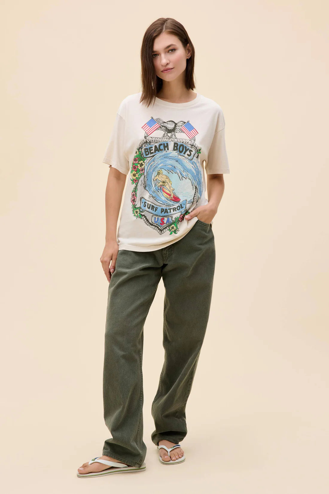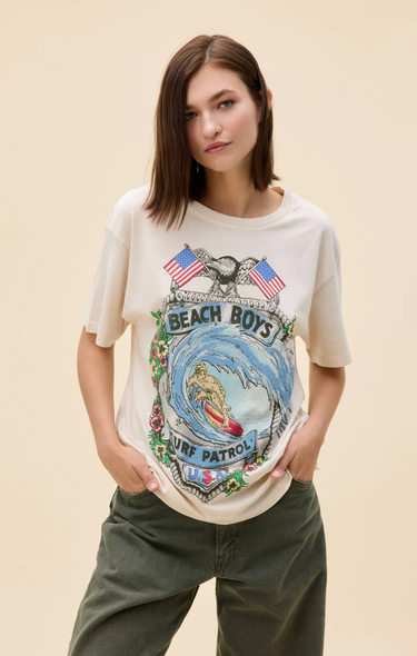 Establishing California culture with a surf-rock sound, The Beach Boys' surf patrol artwork of a sheriff's badge hits as an emblem on this Boyfriend Tee. Stamped with the group's track Catch A Wave, it's sure to be a fan-favorite.