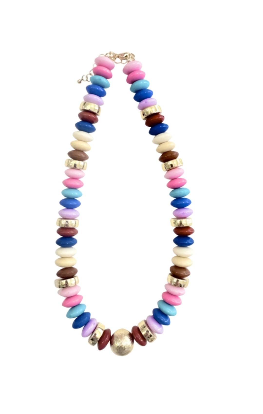Bright and vibrant the Tobie Beaded Disc Beaded Necklace brings a pop of color to any look. This 18” adjustable necklace features a blend of 18k gold-plated beads and colorful stones. Perfect for layering or wearing solo, it’s a versatile statement piece that adds effortless sophistication to any jewelry collection.