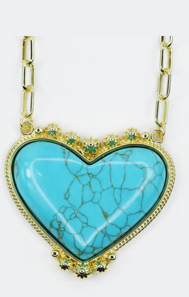 Fall in love with the bold beauty of the Turquoise Heart Statement Necklace, a stunning expression of color, charm, and timeless elegance. Featuring a vibrant turquoise heart framed in shimmering gold detailing, this piece instantly elevates any outfit with its radiant pop of color. Lightweight yet durable, it’s the perfect blend of statement and sophistication — designed to capture attention and confidence wherever you go.