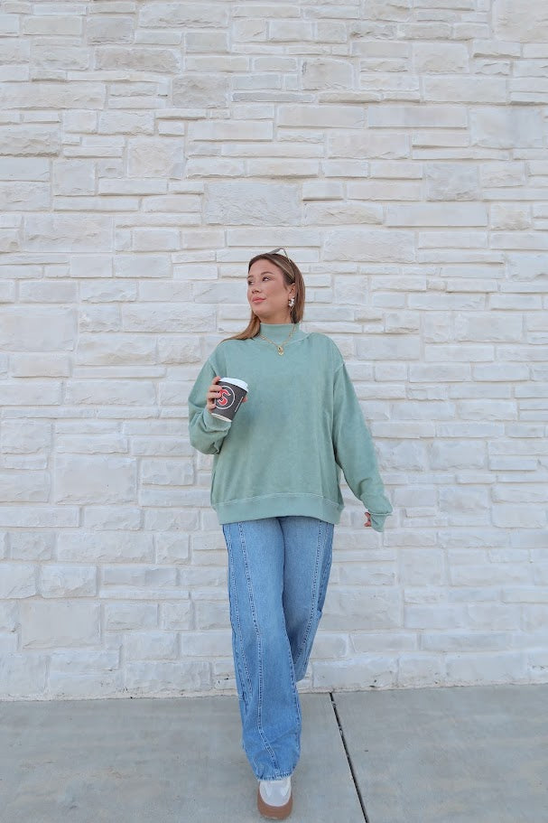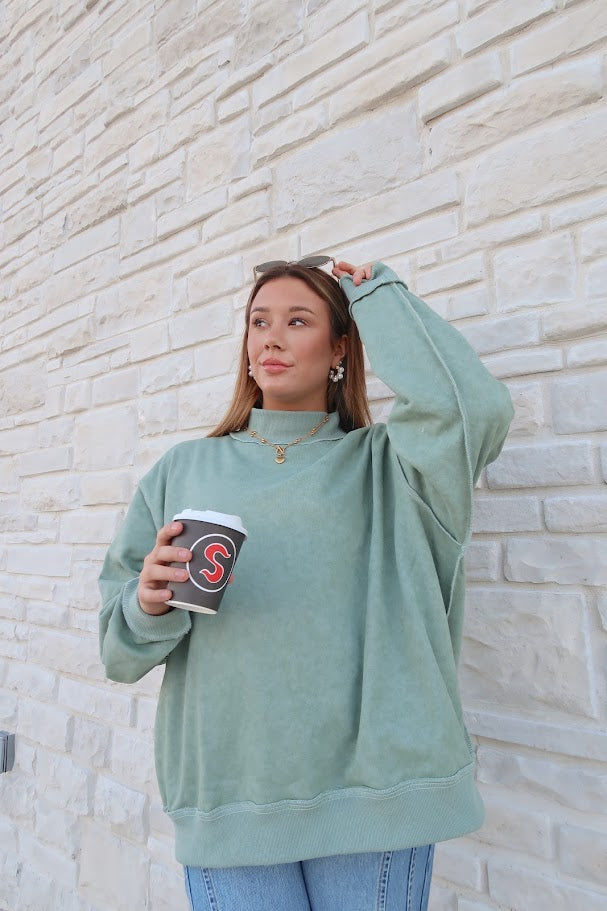 Embrace effortless comfort with this vintage wash mock neck oversized sweatshirt—a wardrobe essential that delivers laid-back style without compromise. The soft, faded finish gives it that coveted lived-in look, while the roomy silhouette flatters every frame and invites layering possibilities. Perfect for casual days, cozy nights, or anywhere in between, this piece transitions seamlessly from weekend errands to relaxed hangouts. The mock neck adds a polished touch that elevates the oversized aesthetic, making it equally at home with jeans or joggers. Invest in comfort that doesn't sacrifice style.